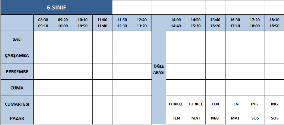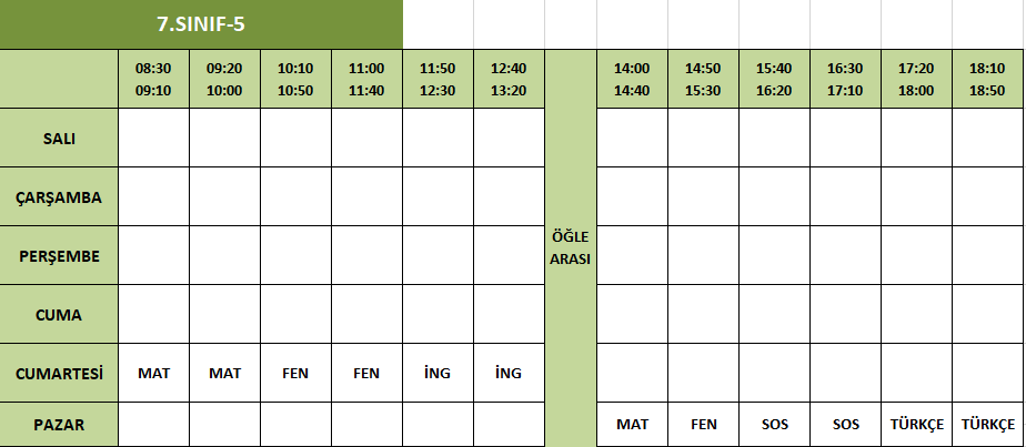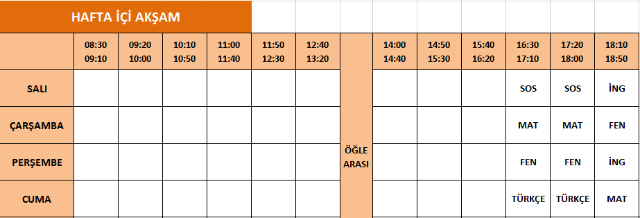 HAFTA İÇİ GRUBU DERS PROGRAMI
