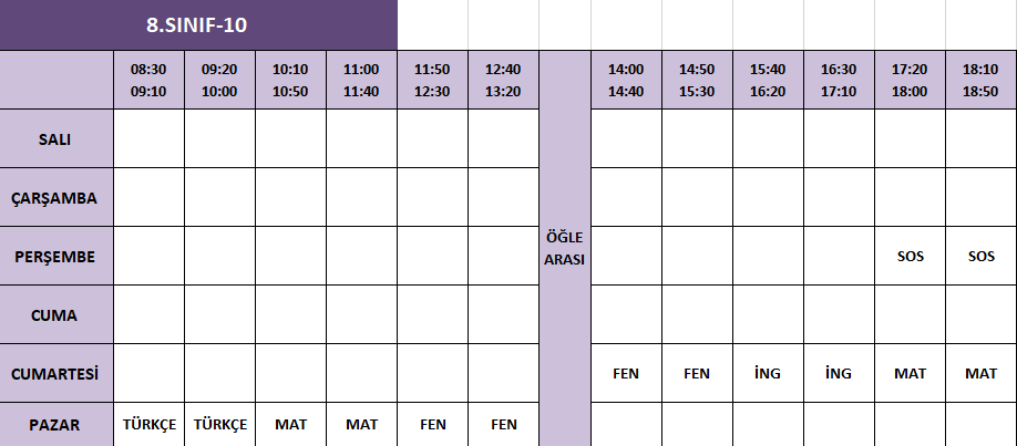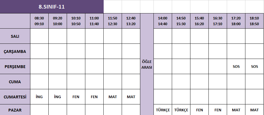 *KEP PLUS KIŞ DÖNEMİ SINIF DERS PROGRAMLARI